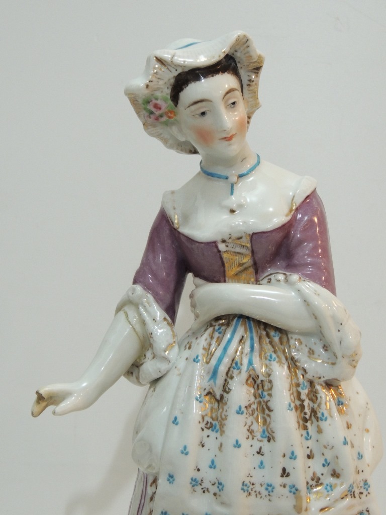 COPPIA SCULTURE PORTAFIORI A FONDO BIANCO DIPiNTE E DECORATE IN ORO RAFFIGURANTI PERSONAGGI IN ABITI D'EPOCA . PERIODO META' SEC. XIX (DIFETTI E RESTAURI COME DA FOTO). MISURE: ALTEZZA CM 31