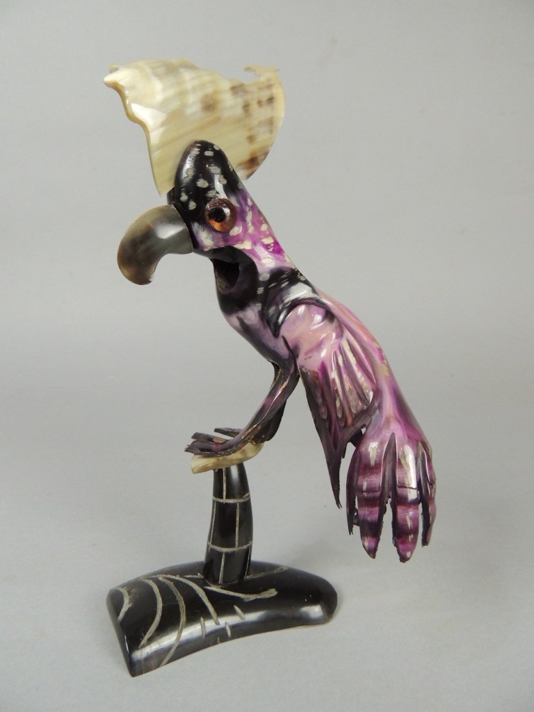 SCULTURA IN CORNO RAFFIGURANTE PAPPAGALLO