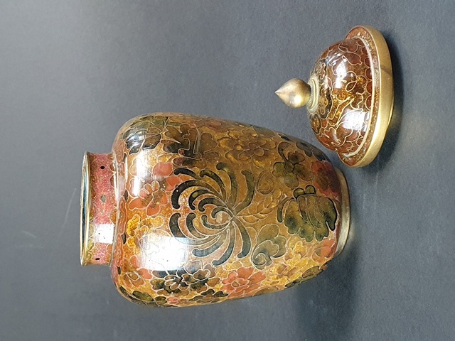 GRAZIOSO VASO ORIENTALE CLOISONNE' LAVORATO A MOTIVI FLOREALI.