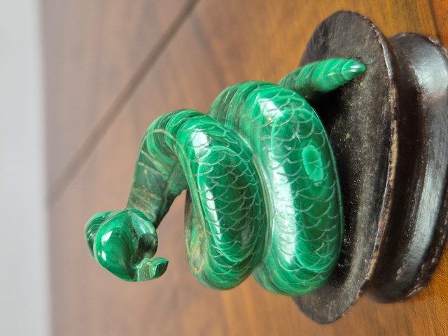 SCULTURA IN MALACHITE RAFFUGURANTE SERPENTE SEC.XX