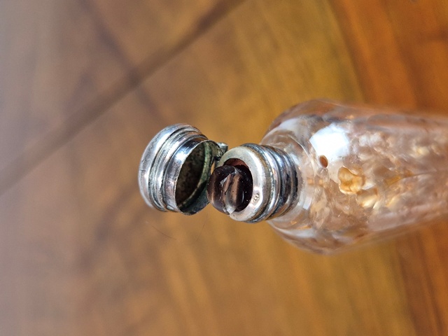 ANTICA PICCOLA BOTTIGLIA PER PROFUMO CRISTALLO E ARGENTO