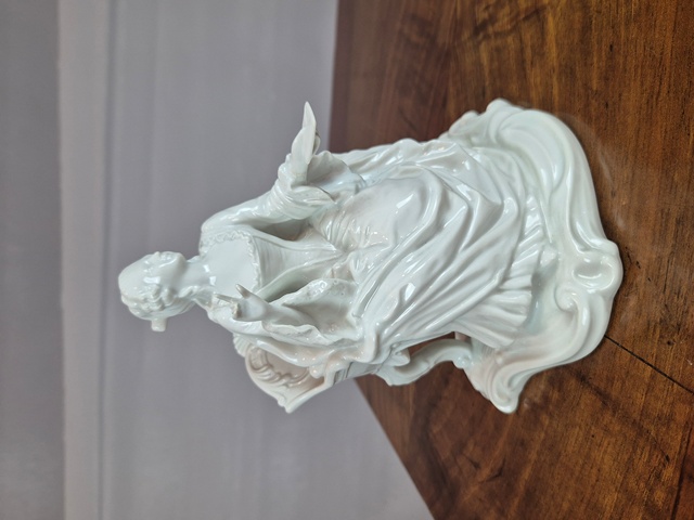 SCULTURA IN PORCELLANA A FONDO BIANCO RAFFIGURANTE DAMA IN ABITI SETTECENTESCHI,MARCATA SUL FONDO GINORI.