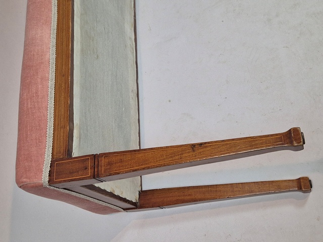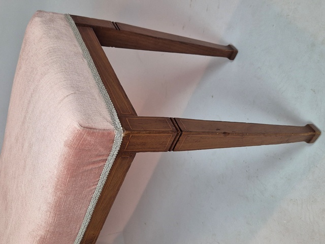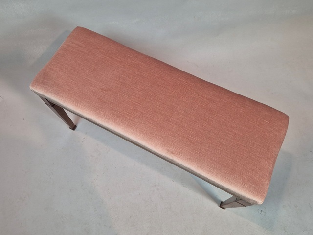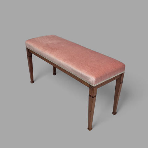 ANTICA PANCA IN LEGNO DI NOCE RIVESTITA IN VELLUTO,QUATTRO GAMBE TRONCO PIRAMIDALI.