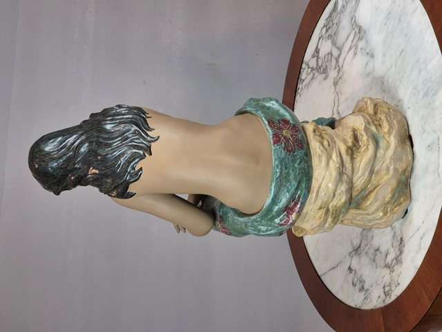 GRANDE SCULTURA IN PORCELLANA RAFFIGURANTE DONNA SEMINUDA.