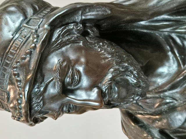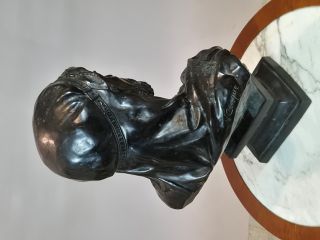FUSIONE IN BRONZO RAFFIGURANTE RITRATTO DI UOMO ORIENTALE,FIRMATA V.CINQUE 1882-1964.