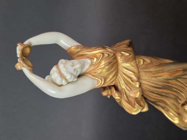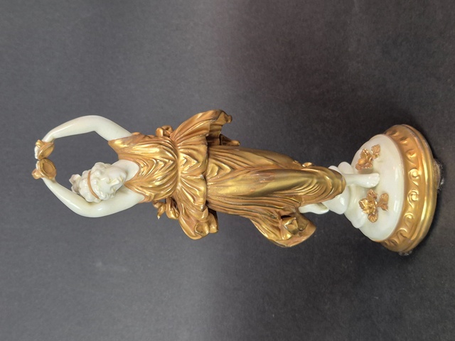 SCULTURA IN PORCELLANA A FONDO BIANCO CON DETTAGLI IN ORO ZECCHINO RAFFIGURANTE DANZATRICE,MARCATA SUL FONDO CON "N" CORONATA CAPODIMONTE GINORI PRIMI DEL NOVECENTO.