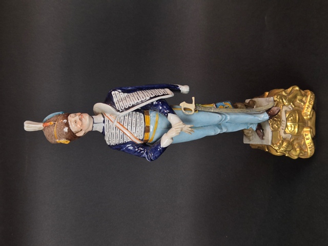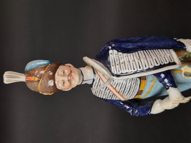 SCULTURA IN PORCELLANA RAFFIGURANTE SOLDATO USSARO INGLESE 1815.