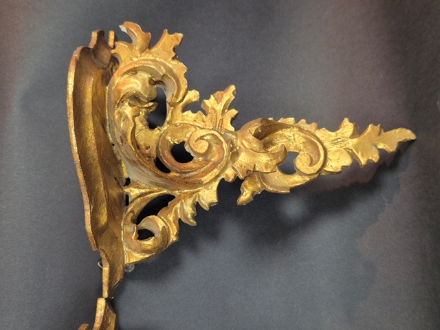 ANTICA COPPIA MENSOLE IN LEGNO DORATO