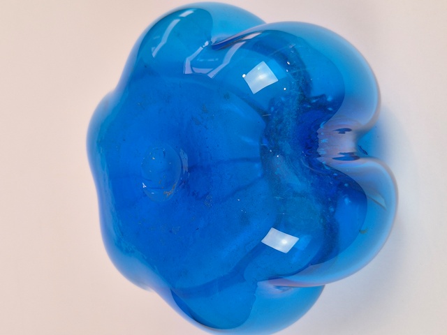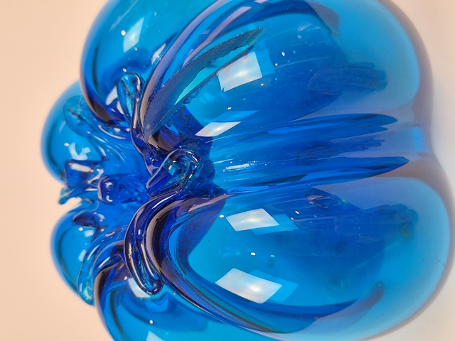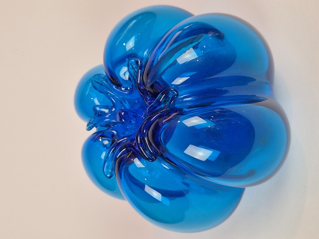 PARTICOLARE SALVADANAIO IN VETRO SOFFIATO A FORMA DI ZUCCA NEL COLORE DEL TURCHESE ACCESO.