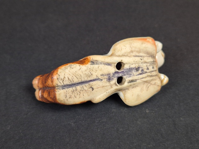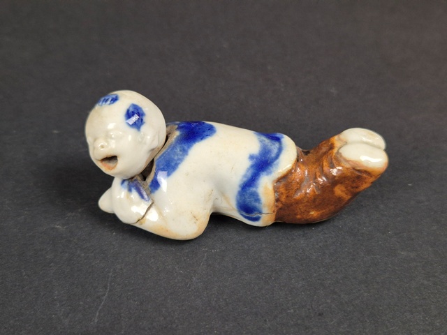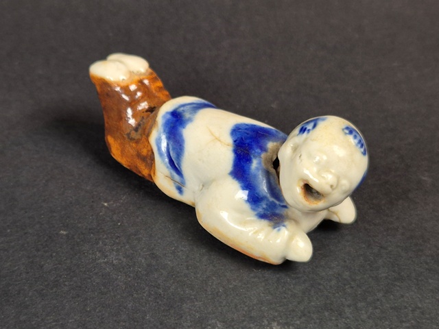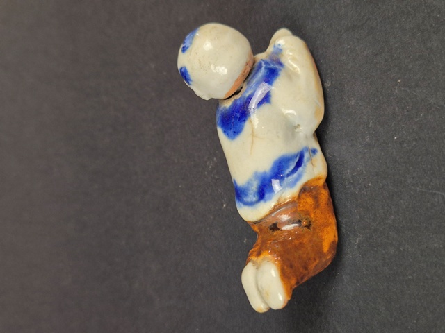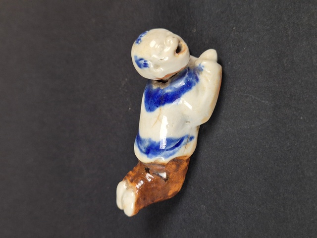 STATUINA RAGAZZO SDRAIATO NETSUKE CERAMICA HIRADO MEIJI FINE SEC.XIX