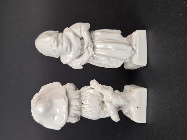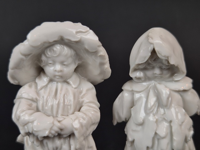 GRAZIOSA COPPIA DI STATUINE IN PORCELLANA DI CAPODIMONTE RAFFIGURANTI GIOVANI NEI COSTUMI DI MENDICANTI.