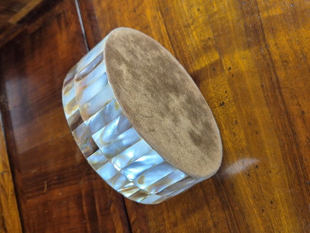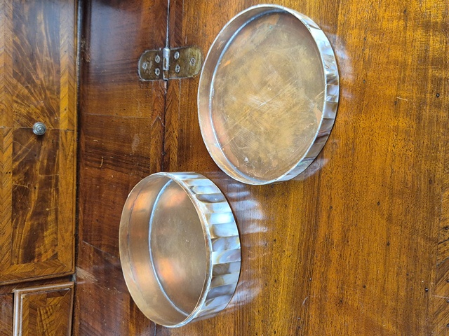 SCATOLA PORTAGIOIE IN RAME RIVESTITA IN MADREPERLA,PRIMA META' SEC.XX