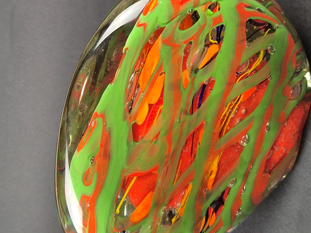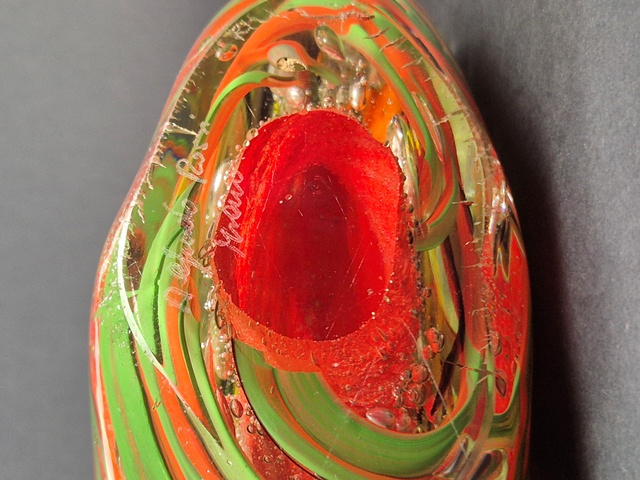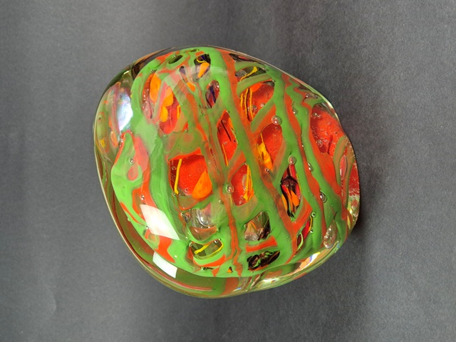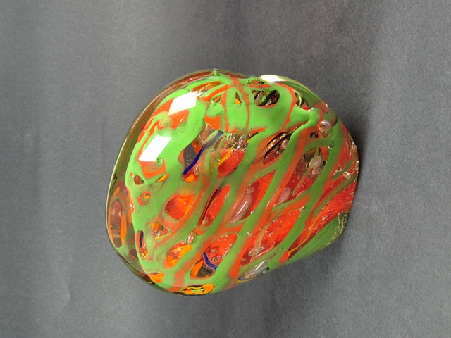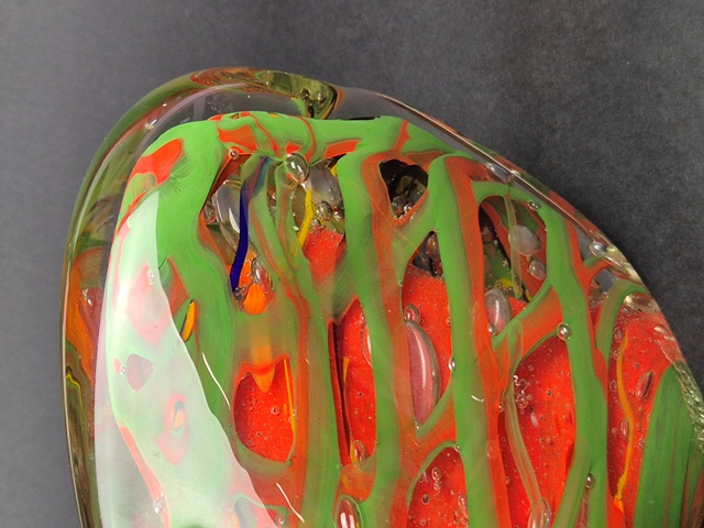 SCULTURA FERMACARTE IN VETRO SOMMERSO FIRMATA ALLA BASE ALFREDO ROSSI.