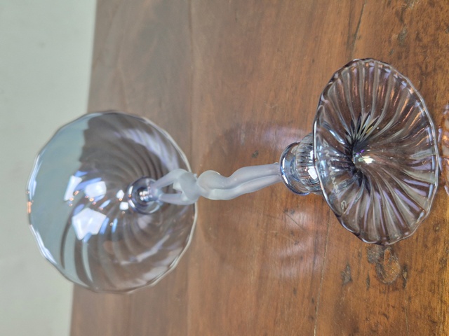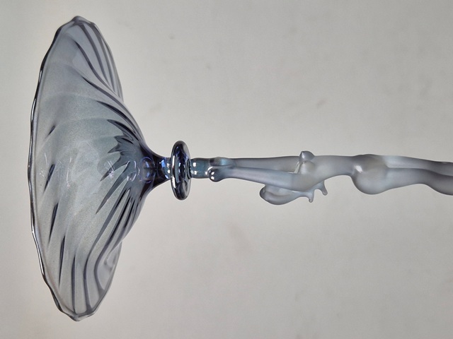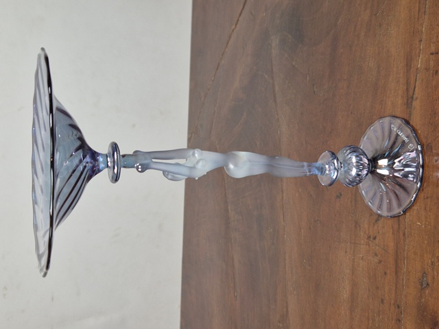 CALICE IN VETRO SOFFIATO COSTOLATO CON GAMBO A FIGURA FEMMINILE,FIRMATO ALLA BASE LA MURRINA.