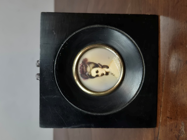 MINIATURA RAFFIGURANTE GENTILDONNA IN CORNICE EBANIZZATA.