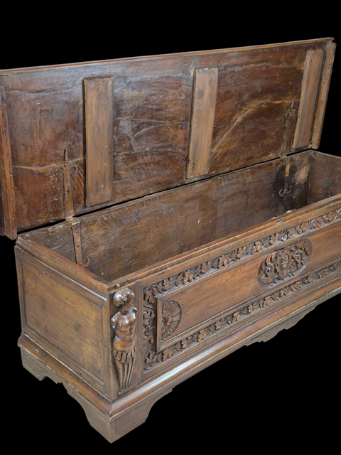 ANTICA CASSAPANCA IN LEGNO DI NOCE SEC.XVII