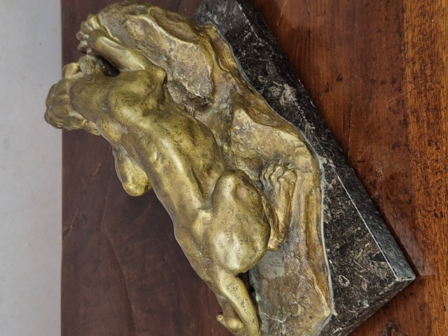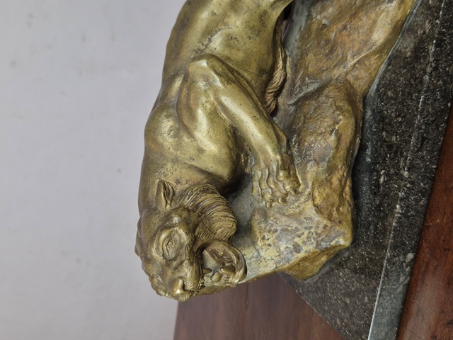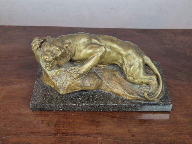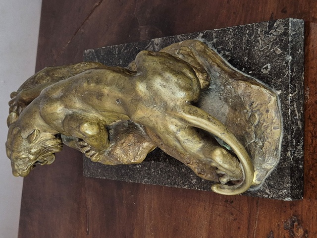 FUSIONE IN BRONZO DORATO RAFFIGURANTE PANTERA SU BASE IN MARMO,FIRMATA PASQUALE MINUCCI (1890-1987)