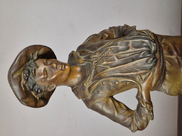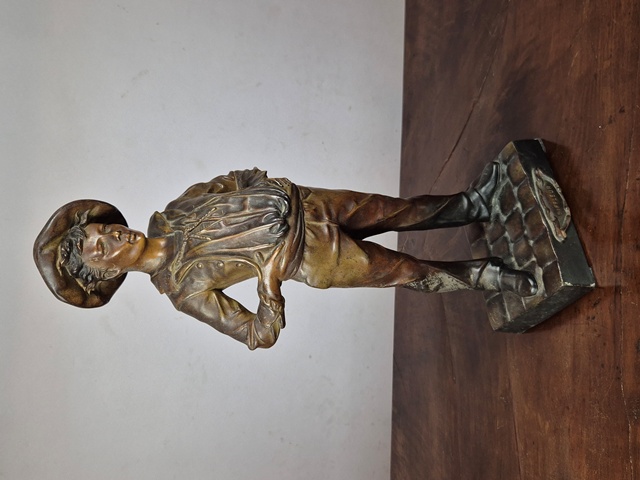 SCULTURA IN METALLO PATINATO BRONZO RAFFIGURANTE RAGAZZO CHE FISCHIA,INTITOLATO "SIFFLEUR"