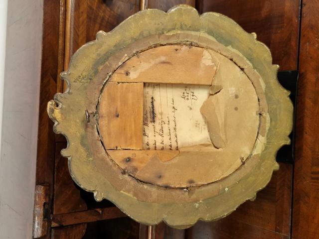 ANTICO DIPINTO OVALE A PASTELLO RAFFIGURANTE GENTILDONNA,CORNICE IN LEGNO DORATO ED INTAGLIATO A MOTIVI VEGETALI E DI VOLUTE.