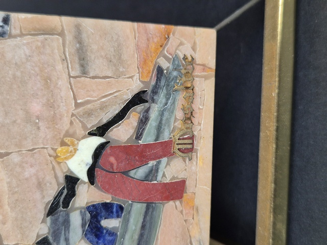 MOSAICO REALIZZATO IN PIETRE NATURALI,FIRMATO IN BASSO MOSALITE.