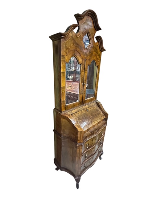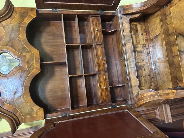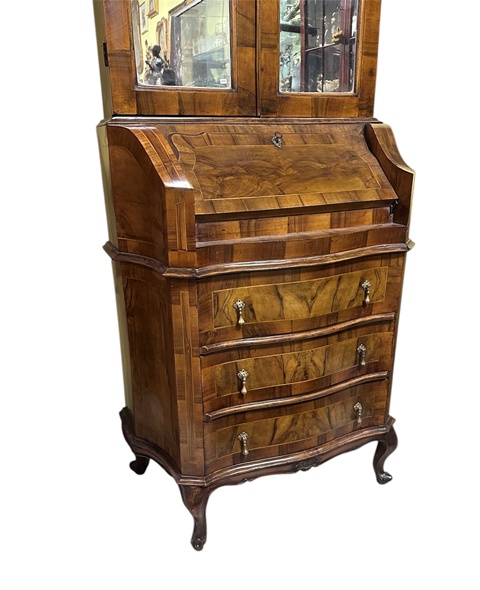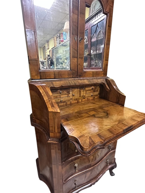 PARTE INFERIORE CON SPORTELLO A RIBALTA E TRE CASSETTI,QUATTRO GAMBE MOSSE ED INTAGLIATE.