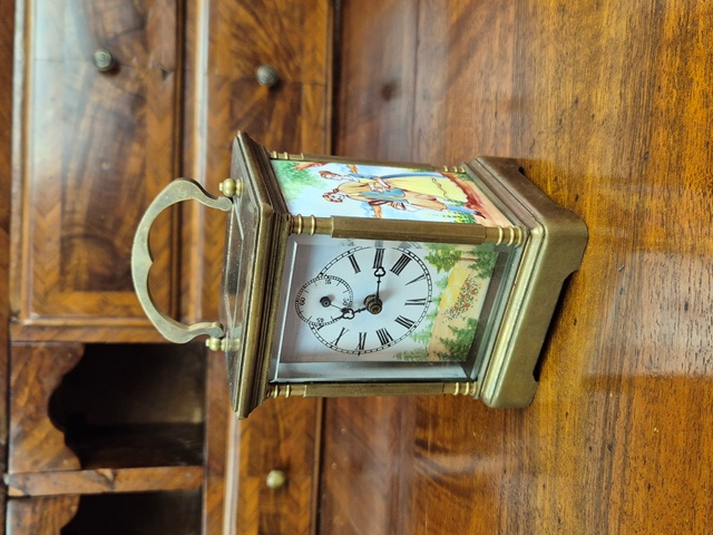 ![]() disponibile OROLOGIO DA TAVOLO CON QUADRANTE E LATERALI IN SMALTI DIPINTI,PARTE POSTERIORE CON LETTERE INCISE "G" ED "F" COMPLETO PER LA RICARICA FUNZIONANTE IN OTTIME CONDIZIONI. EPOCA SEC.XX ALTEZZA:16 CM LARGHEZZA:8,5 CM PROFONDITA':7,5 CM