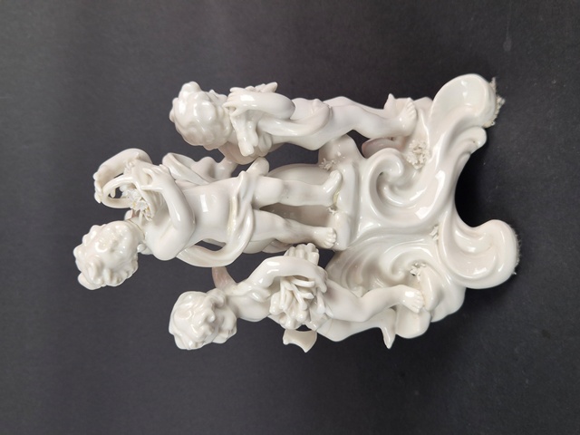 GRUPPO IN PORCELLANA RAFF.PUTTI CAPODIMONTE SEC.XXdisponibile GRAZIOSO GRUPPO SCULTOREO A FONDO BIANCO RAFFIGURANTE PUTTI IN POSE QUOTIDIANE,MARCATO SUL FONDO CON "N" CORONATA IN BLU. EPOCA SEC.XX ALTEZZA:19 CM IN BUONE CONDIZIONI,PRESENTA RESTAURI COME DA FOTO. € 160,00 |