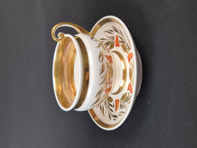 GRANDE ED ANTICA TAZZA IN PORCELLANA PARIGI SEC.XIXdisponibile ANTICA TAZZA CON PIATTINO IN PORCELLANA A FONDO BIANCO,DIPINTA E DECORATA IN ORO ZECCHINO A MOTIVI FLOREALI. FIRMATA SUL FONDO JULLIEN A PARIS. EPOCA META' SEC.XIX ALTEZZA DELLA TAZZA CON PIATTINO:11,5 CM DIAMETRO PIATTINO:16 CM IN OTTIME CONDIZIONI. € 130,00 |