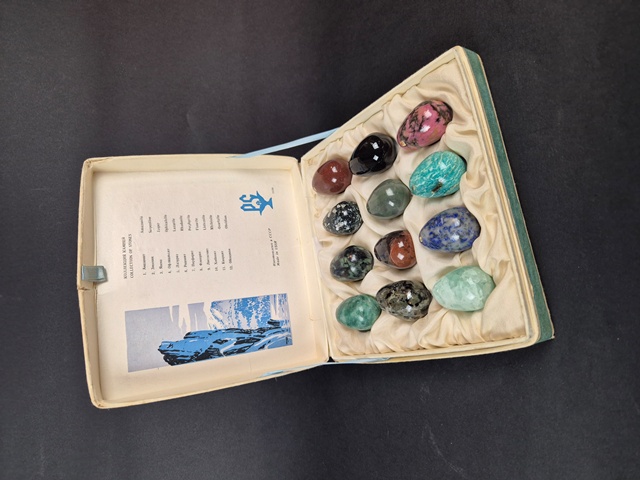 SCATOLA - COFANETTO UOVA MINERALI URSS SEC.XXdisponibile SCATOLA CONTENENTE 12 MINERALI LEVIGATI A FORMA DI UOVA. EPOCA SEC.XX DIMENSIONI UOVA:4X3 CM DIMENSIONI SCATOLA 18,5X17,5 CM IN BUONE CONDIZIONI,SCATOLA CON DIEFTTI COME DA FOTO. € 120,00 |