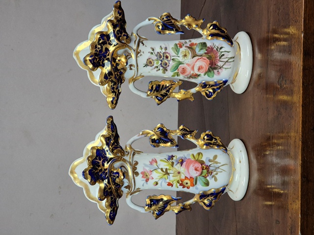 ANTICA COPPIA DI VASI IN PORCELLANA SEC.XIXdisponibile COPPIA DI VASI OIN PORCELLANA LAVORATI CON TRALCI DI EDERA,DIPINTI IN BLU COBALTO ED ORO ZECCHINO,CENTRALE DIPINTO A MOTIVI FLOREALI. EPOCA SEC.XIX ALTEZZA:27 CM LARGHEZZA:17 CM IN BUONE CONDIZIONI,LIEVI USURE COME DA FOTO. € 200,00 |