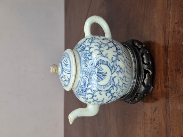 TEIERA IN PORCELLANA CINA SEC.XIXdisponibile PICCOLA TEIERA IN PORCELLANA A FONDO BLU SU BASE IN LEGNO. CINA EPOCA SEC.XIX ALTEZZA:13 CM LUNGHEZZA:13 CM IN BUONE CONDIZIONI CON SEGNI DEL TEMPO PASSATO,PICCOLE IMPERFEZIONI ALLO SMALTO DOVUTE ALLA COTTURA NELL'ANTICO FORNO A LEGNA.