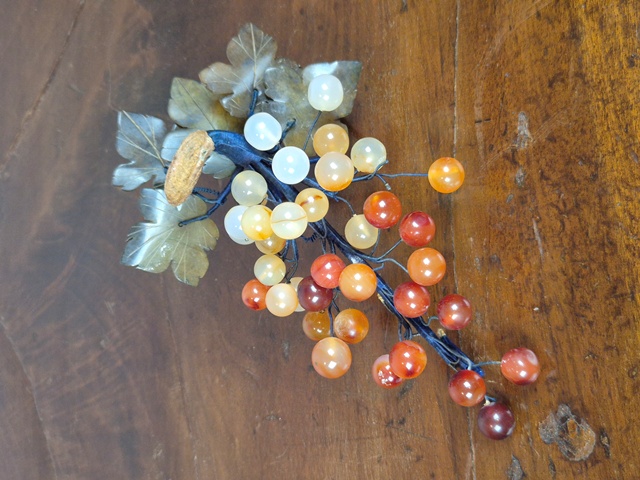 GRAPPOLO D'UVA IN PIETRE DURE SEC.XXdisponibile GRAPPOLO D'UVA IN PIETRE DURE E FOGLIE IN GIADA VERDE. EPOCA META' SEC.XX DIMENSIONI:15X9 CM CIRCA IN BUONE CONDIZIONI. € 70,00 |