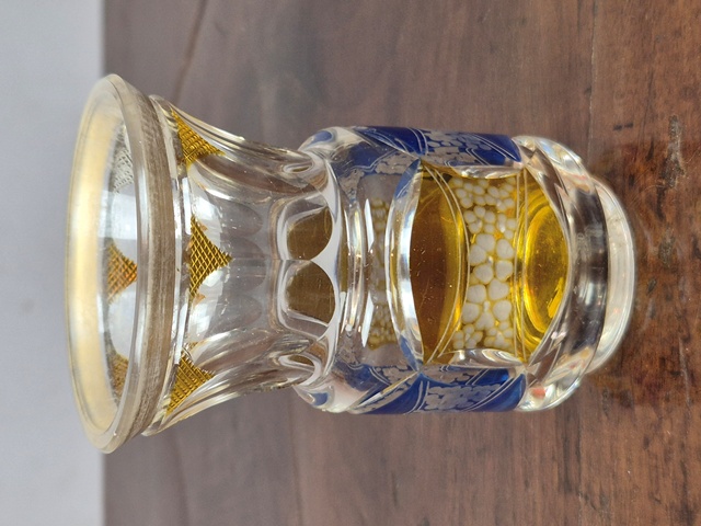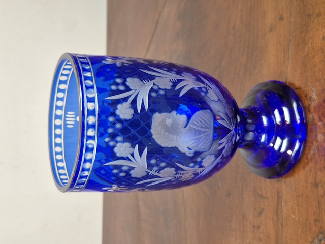 ANTICO PICCOLO CALICE DI BOEMIA disponibile PICCOLO CALICE IN CRISTALLO DI BOEMIA CON RISERVE NEI COLORI DEL BLU E DELL'AMBRA,LAVORATO A MOTIVI FLOREALI. ALTEZZA:10 CM IN OTTIME CONDIZIONI.