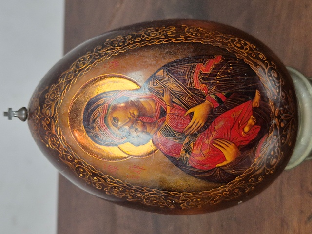 UOVO RUSSO MADONNA CON BAMBINO SEC.XXdisponibile UOVO IN LEGNO DECORATO IN ORO E DIPINTO,RAFFIGURANTE MADONNA CON BAMBINO SU BASE IN OTTONE. EPOCA SEC.XX ALTEZZA:18 CM IN BUONE CONDIZIONI CON LIEVI SEGNI DEL TEMPO PASSATO. € 180,00 |