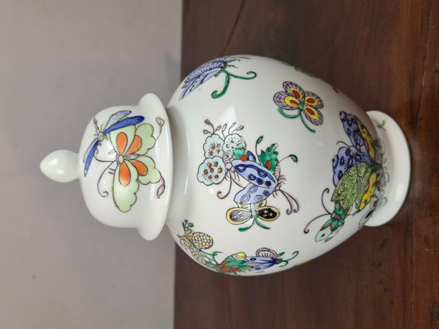 POTICHE CINA SEC.XXdisponibile POTICHE IN PORCELLANA A FONDO BIANCO DIPINTA A MOTIVI DI FARFALLE,MARCATA SUL FONDO IN ROSSO CINA. EPOCA SEC.XX ALTEZZA:20,5 CM IN OTTIME CONDIZIONI. € 60,00 |
