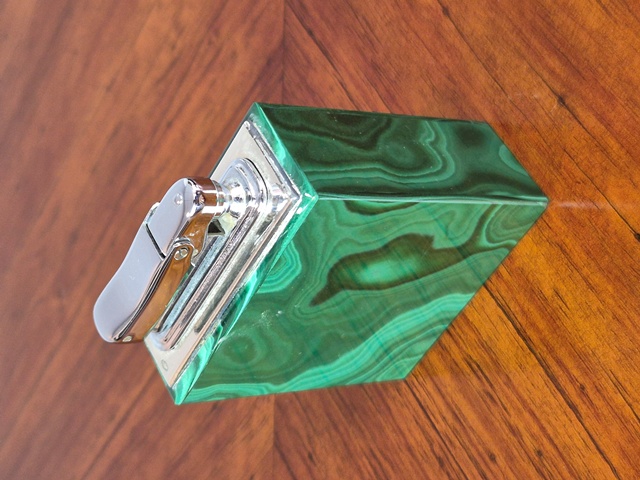 ACCENDINO DA TAVOLO IN ARGENTO E MALACHITE ANNI'70disponibile ACCENDINO DA TAVOLO IN ARGENTO 800 E MALACHITE. EPOCA ANNI'70 DIMENSIONI:5,5 X 7,5 CM OTTIME CONDIZIONI MA NON TESTATO PER VERIFICARNE IL FUNZIONAMENTO