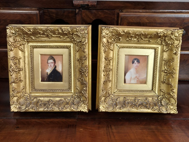 SIR WILLIAM JOHN NEWTON 1785-1869 COPPIA MINIATUREdisponibile COPPIA DI MINIATURE RAFFIGURANTI GENTILDONNA E GENTILUOMO CON ISCRIZIONI SUL RETRO IN CORNICE IN LEGNO DARATO,LAVORATE A MOTIVI DI CONCHIGLIE E FESTONI. SIR WILLIAM GOHN NEWTON 1975-1869 MISURE:23 X 25 CM IN BUONE CONDIZIONI CON LIEVI SEGNI DEL TEMPO PASSATO. € 900,00 |