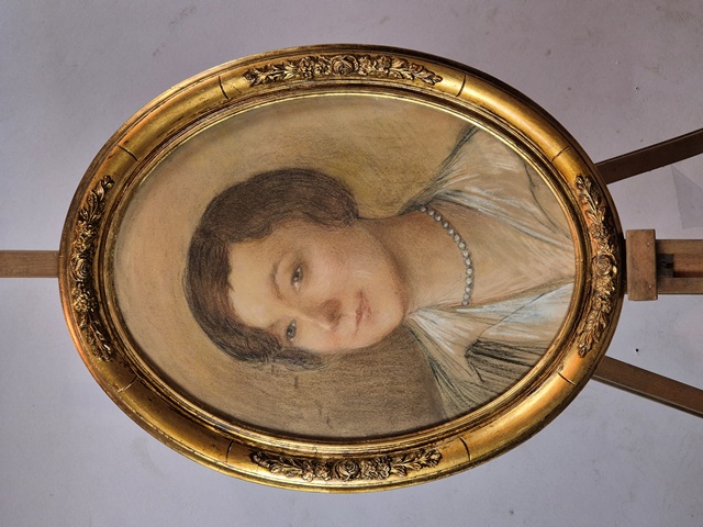 ANTICO DIPINTO A PASTELLO PRIMA META' SEC.XIXdisponibile PASTELLO RAFFIGURANTE GENTILDONNA CON CORNICE IN LEGNO DORATO. PRIMA META' SEC.XIX ISCRIZIONE SUL RETRO. DIMENSIONI:37 X 42 CM IN BUONE CONDIZIONI CON LIEVI SEGNI DEL TEMPO PASSATO.