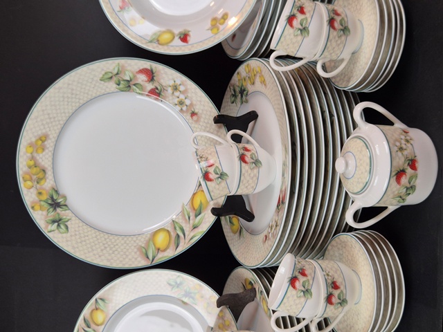 SERVIZIO PIATTI LIMOGES "L'ATELIER DELA ROCHE" LINEA CLAIREdisponibile SERVIZIO PIATTI IN PORCELLANA LIMOGES 36 PEZZI PIU 25 PEZZI SERVIZIO DA CAFFE',DECORATO A MOTIVI VEGETALI DI FIORI,LIMONI E FRAGOLE. MARCATO SUL FONDO IN OTTIME CONDIZIONI. € 480,00 |